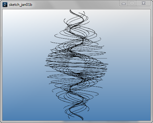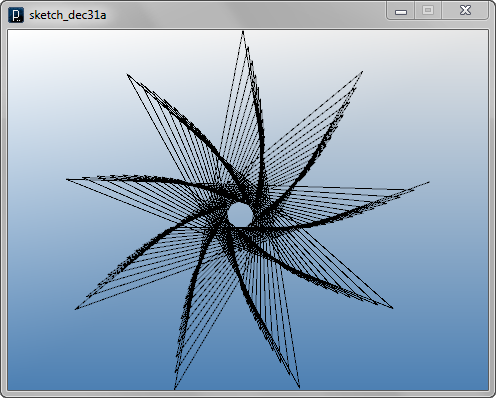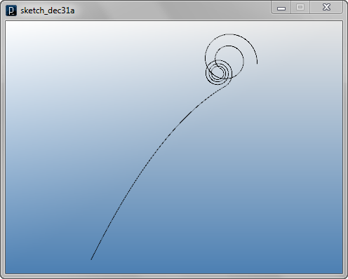 The example below changes the angle to rotate and the multiplier (scaling factor) to multiply the direction vector. Because the rotation vector is large and not clear number, it forms totally different geometry from the swirling curve in the previous example.