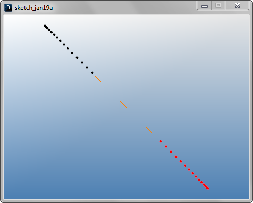 Tension LineThe field line in a type of ICurve is added to the tension agent class and it creates a new line having two particles' positions as end points of the line when line is not initialized yet (When no value is assigned to field variable of some class, it contains a value of "null". Please also see this page about "null"). Then if it's already has content in line, ICurve's internal graphical representation is updated by updateGraphic() method.