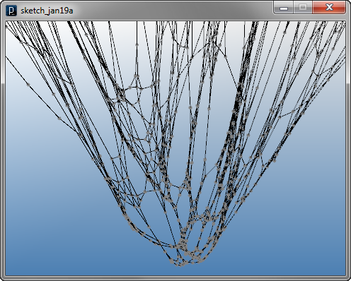 Combining Tension and Other ForcesThe code below includes an agent class of a gravity force, MyGravity. Each particle is pulled by the tensile lines as well as the gravity force.