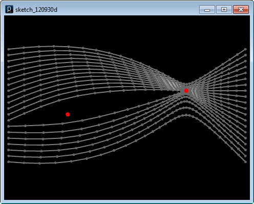 The next code applies forces to the tension lines with two attractors, one with attractive force and another with repulsive force.