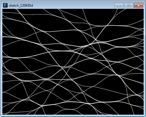 The next example only changes the input file. When you have random intersecting lines, swarm forces to cluster together are clear. The final lines are result of the balance between gathering swarm forces and smoothing tension forces. The code below also hides points by hide() method.