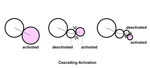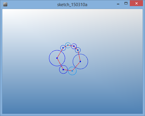 Just to show the effect of tensile links and the network structure of links clearer, the code below adds another repulsion behavior in interact method to push other cells when they are within a certain distance range (30) in addition to the original repulsion force not to have their body defined by radius overlapped.