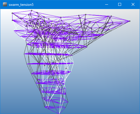 Self-Optimizing Physics Simulation AgentsAs result of nodes staying on a plane, being separated by compression structure, and pulled by tension structure between sections, nodes, sticks and wires are moved to equilibrium locations under the forces perpendicular to the section planes.