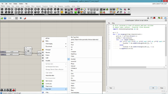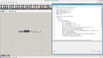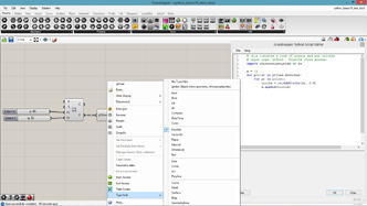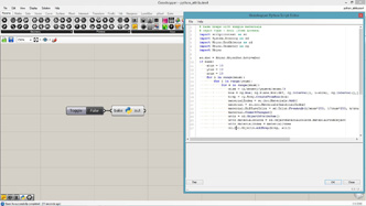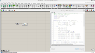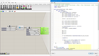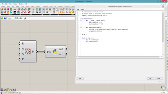 # This adds curves on the input curve rotated from tis tangent direction # input type - curve : Curve (Item Access), count : int (Item Access), axis : Vector3d (Item Access), angle : float (Item Access), length : float (Item Access), frequency : float (Item Access) import Rhino.Geometry as rg import math def curveOnCurve(crv, u, length, angle, axis, rollAngle): pt = crv.PointAt(u) tan = crv.TangentAt(u) ax = rg.Vector3d(axis) ax.Rotate(rollAngle, tan) tan.Rotate(angle, ax) tan.Unitize() pt2 = pt + tan * length tan.Rotate(angle, axis) pt3 = pt2 + tan * length return rg.NurbsCurve.Create(False, 2, [pt, pt2, pt3]) a = [] for i in range(count+1): u = i/count ang = angle/180*math.pi + math.sin(frequency*u*math.pi)*0.5 len = length * (math.cos(frequency*u*math.pi)+1)/2 crv = curveOnCurve(curve, u, len, ang, axis, u*math.pi) a.append(crv)