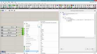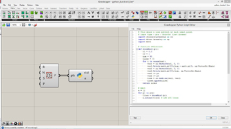 # This separates points and creates attractor controlled circles or rectangles # input type - pts : Point3d (List Access), attr : Point3d (Item Access) import rhinoscriptsyntax as rs import Rhino.Geometry as rg # Geometry library import math a = [] b = [] for pt in pts: if( pt.Y % 10 > 0 and pt.Y % 10 < 2): rect = rs.AddRectangle(rg.Plane.WorldXY, 1.5, 0.4) rs.MoveObject(rect, pt) rs.MoveObject(rect, rg.Vector3d(-0.75,-0.2,0)) a.append(rect) else: dist = rs.Distance(pt, attr) circle = rs.AddCircle(pt, 0.02*dist) b.append(circle)