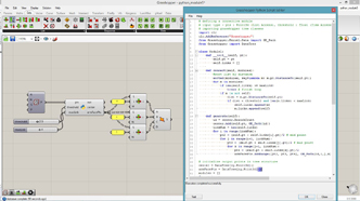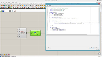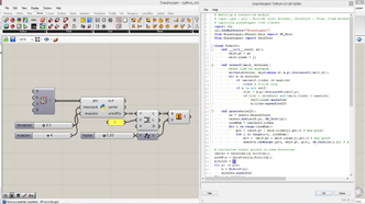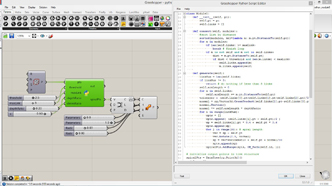 # defining a connective module # input type - pts : Point3d (List Access), threshold : float (Item Access) import rhinoscriptsyntax as rs class Module1: def __init__(self, pt): self.pt = pt self.links = [] def connect(self, modules): for m in modules: if m is not self: dist = m.pt.DistanceTo(self.pt) if dist < threshold: self.links.append(m) def generate(self): for m in self.links: line = rs.AddLine(self.pt, m.pt) lines.append(line) lines = [] modules = [] # create modules for pt in pts: m = Module1(pt) modules.append(m) # connect modules for m in modules: m.connect(modules) # generate geometries for m in modules: m.generate()