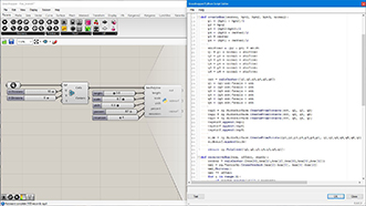 # bake curves with colors # input type - bool (Item Access) import scriptcontext as sc import System.Drawing as sd import Rhino.DocObjects as rd import Rhino.Geometry as rg import Rhino import math sc.doc = Rhino.RhinoDoc.ActiveDoc if bake: num = 100 for i in range(num): pt1 = rg.Point3d(i, 0, math.sin(i*0.2)*2) pt2 = rg.Point3d(i, 5, 2) pt3 = rg.Point3d(i, 10, math.cos(i*0.1)*2) curve = rg.NurbsCurve.Create(False, 2, [pt1, pt2, pt3]) attr = rd.ObjectAttributes() attr.ColorSource = rd.ObjectColorSource.ColorFromObject attr.ObjectColor = sd.Color.FromArgb(i/num*255, (num-i)/num*255, 255) sc.doc.Objects.AddCurve(curve, attr)
