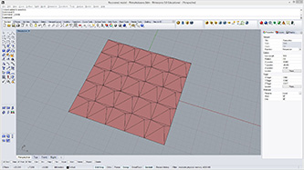 # This makes surface panels by 3 points on an input surface # input type - surf : Surface, unum : int, vnum : int import Rhino.Geometry as rg panels = [] for i in range(unum): for j in range(vnum): pt1 = surf.PointAt(i/unum, j/vnum) pt2 = surf.PointAt((i+0.9)/unum, (j+0.1)/vnum) pt3 = surf.PointAt((i+1.2)/unum, (j+1.0)/vnum) pt4 = surf.PointAt((i+0.3)/unum, (j+1)/vnum) pt5 = surf.PointAt((i+0.6)/unum, (j+0.3)/vnum) n1 = surf.NormalAt(i/unum, j/vnum) n2 = surf.NormalAt((i+0.9)/unum, (j+0.1)/vnum) n3 = surf.NormalAt((i+1.2)/unum, (j+1.0)/vnum) n4 = surf.NormalAt((i+0.3)/unum, (j+1)/vnum) n5 = surf.NormalAt((i+0.6)/unum, (j+0.3)/vnum) pt1 += n1*0.2 pt2 += n2*0.2 pt3 += n3*-0.1 pt4 += n4*1.3 pt5 += n5*1.5 panel = rg.NurbsSurface.CreateFromCorners(pt2, pt3, pt5) panels.append(panel) panel = rg.NurbsSurface.CreateFromCorners(pt3, pt4, pt5) panels.append(panel) panel = rg.NurbsSurface.CreateFromCorners(pt4, pt1, pt5) panels.append(panel)