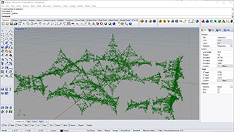 # this creates random branching lines with recursion # input type: line - Line (Item Access), div - int (Item Access) import rhinoscriptsyntax as rs import Rhino.Geometry as rg import random import math def recursiveLine(line, depth, resultList): pt1 = line.PointAt(0) pt2 = line.PointAt(1) dir1 = pt2 - pt1 dir2 = rg.Vector3d(dir1) # copy dir1.Rotate(math.pi/3, rg.Vector3d.ZAxis) # random angle dir2.Rotate(-math.pi/3, rg.Vector3d.ZAxis) dir1 *= random.random()*0.2 + 0.7; # random scale dir2 *= random.random()*0.2 + 0.7; line1 = rg.Line(pt2, pt2+dir1) line2 = rg.Line(pt2, pt2+dir2) resultList.append(line1) resultList.append(line2) if(depth>0): if(random.random()<0.9): # random omission recursiveLine(line1, depth-1, resultList) if(random.random()<0.8): # random omission recursiveLine(line2, depth-1, resultList) a = [] recursiveLine(line, div, a)